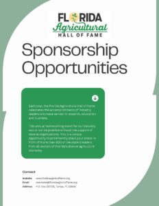 SponsorshipsThe Florida Agricultural Hall of Fame welcomes the opportunity to promote organizations at our annual banquet. We appreciate their generous support, which allows us to put on this wonderful event.